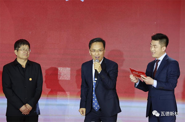 董事長謝富強(qiáng)首先講話,深情感謝各方賓朋。他簡要回顧30年風(fēng)雨歷程。一個(gè)十幾人的小作坊,在艱苦條件下,依靠團(tuán)結(jié)奮斗的精神,誠信經(jīng)營的理念,不斷創(chuàng)新的勇氣,由小到大,由弱到強(qiáng),由地面到門窗再到屋面,無論市場如何變遷,始終堅(jiān)持不懈地打造自已品牌的堅(jiān)強(qiáng)信念。將一支半手工作業(yè)的生產(chǎn)線打造成如今高端智能國際化的生產(chǎn)力量。實(shí)現(xiàn)了“瓦冠神州,德行天下”原初的奮斗目標(biāo),并將它確立為瓦德人躬身踐行的核心價(jià)值和企業(yè)永遠(yuǎn)的座右銘。