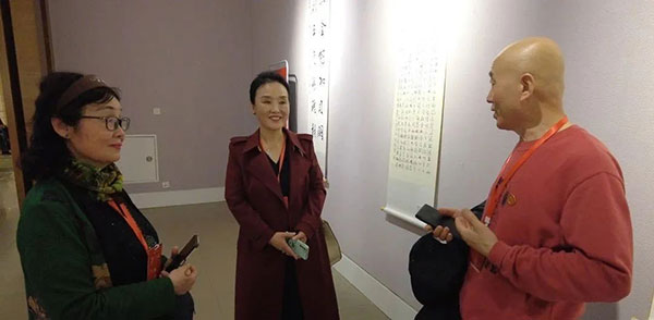 展覽大廳排列著143幅慶祝瓦德集團成立30年的專題書畫作品,散發(fā)著清雅的墨香,流轉(zhuǎn)著濃郁的文氣。參觀中除了各路書畫家,文人名流,還有近百名來自邯鄲的書畫愛好者。他們在參觀中一幅不拉地駐足專注。時而點頭,時兒凝思,能參展如此獨特的書畫作品,可謂大飽眼福,受益良多。